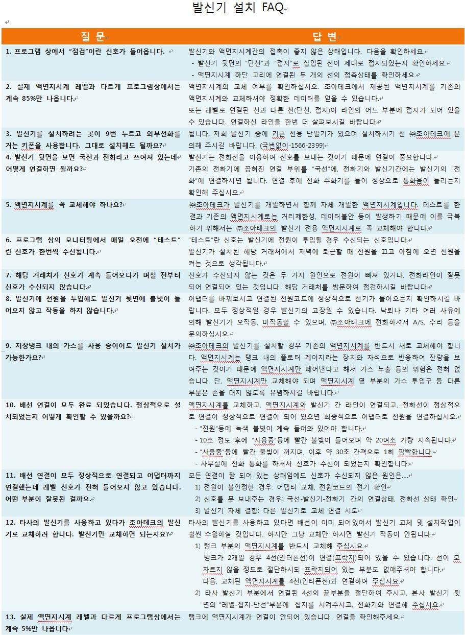 탱크원격감시 설치 FAQ 입니다.