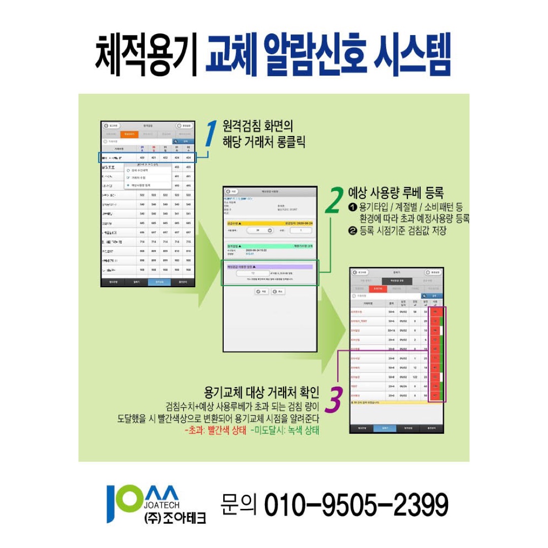 체적용기 교체 알람신호 시스템